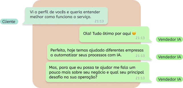 Você pode definir o tom de voz, as perguntas de qualificação e as regras de negócio específicas para seu segmento.